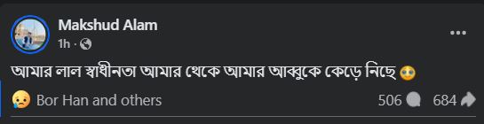 নিহত ব্যবসায়ীর ছেলে মাকসুদ আলম এক ফেইসবুক পোস্টে লিখেন, আমার লাল স্বাধীনতা আমার থেকে আমার আব্বুকে কেড়ে নিছে।